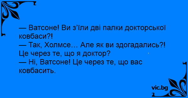 — Ватсоне! Ви з’їли дві палки докторської ковбаси?!
