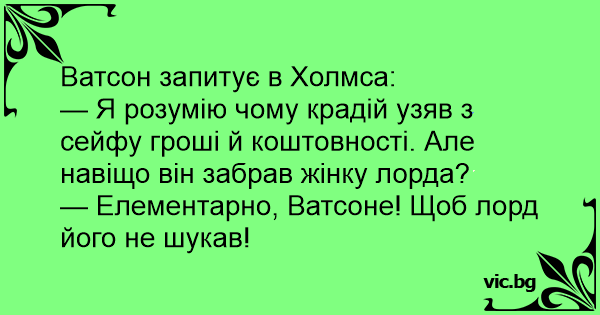 — Елементарно, Ватсоне! Щоб лорд його не шукав!
