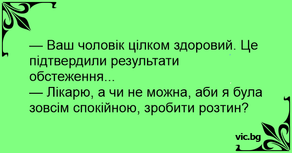 — Ваш чоловік цілком здоровий. Це підтвердили результати обстеження...
