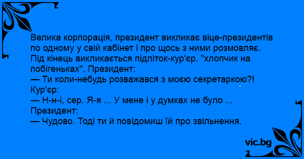— Ти коли-небудь розважався з моєю секретаркою?! Kуp'єр: