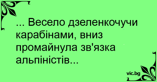 ... Весело дзеленкочучи карабінами, вниз промайнула зв'язка альпіністів...