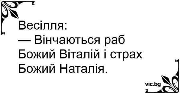 — Вінчаються раб Божий Віталій і страх Божий Наталія.