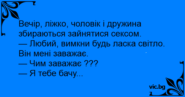 — Любий, вимкни будь ласка світло. Він мені заважає.