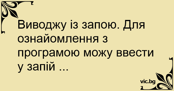 Виводжу із запою. Для ознайомлення з програмою можу ввести у запій ...