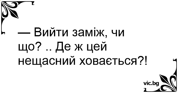 — Вийти заміж, чи що? .. Де ж цей нещасний ховається?!