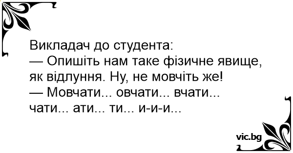 — Опишіть нам таке фізичне явище, як відлуння. Ну, не мовчіть же!