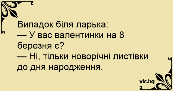 — У вас валентинки на 8 березня є?