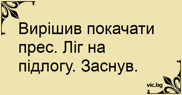 Вирішив покачати прес. Ліг...