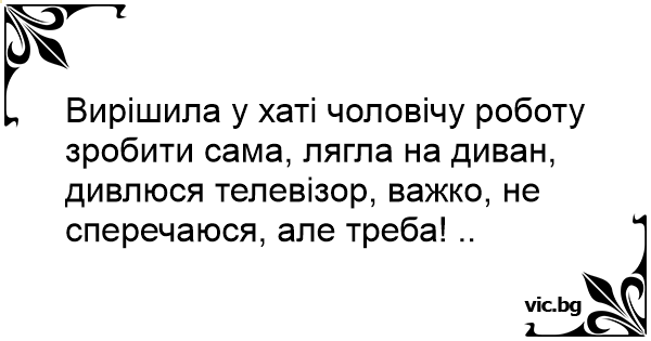 Вирішила у хаті чоловічу роботу зробити сама, лягла на диван, дивлюся телевізор, важко, не сперечаюся, але треба! ..