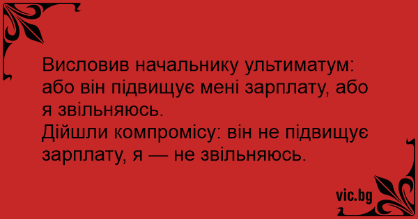 Дійшли компромісу: він не підвищує зарплату, я — не звільняюсь.