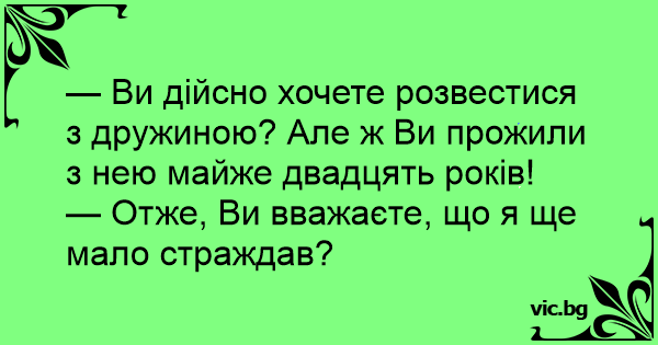 — Ви дійсно хочете розвестися з дружиною? Але ж Ви прожили з нею майже двадцять років!