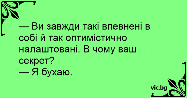 — Ви завжди такі впевнені в собі й так оптимістично налаштовані. В чому ваш секрет?