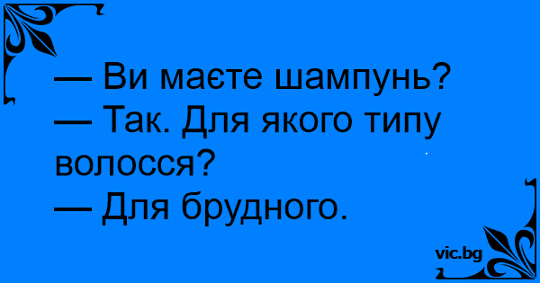 - Имате ли шампоан? - За каква коса? - За мръсна