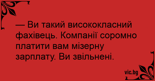 — Ви такий висококласний фахівець. Компанії соромно платити вам мізерну зарплату. Ви звільнені.