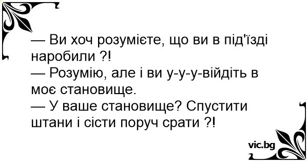 — У ваше становище? Спустити штани і сісти поруч срати ?!