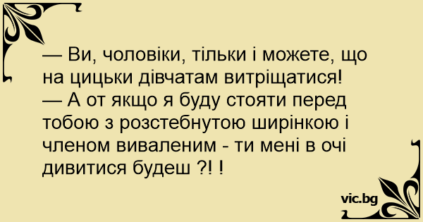 — Ви, чоловіки, тільки і можете, що на цицьки дівчатам витріщатися!