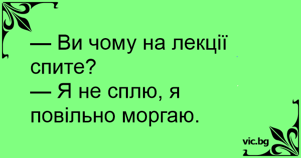 — Ви чому на лекції спите? — Я не сплю, я повільно моргаю.