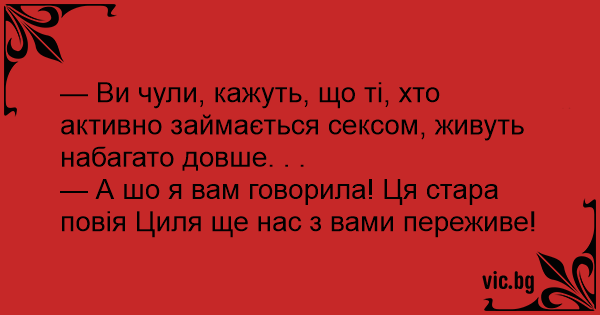— Ви чули, кажуть, що ті, хто активно займається сексом, живуть набагато довше. . .