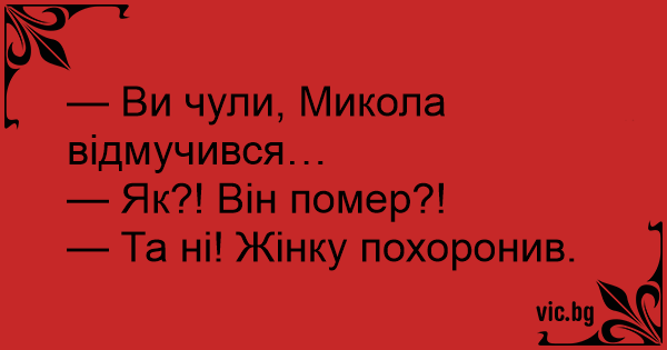 — Ви чули, Микола відмучився…