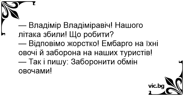 — Владімір Владіміравіч! Нашого літака збили! Що робити?