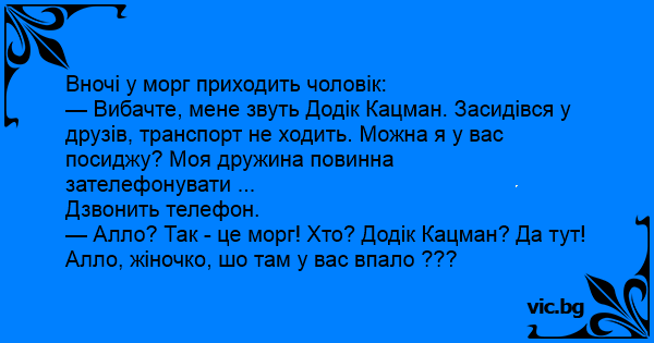 — Алло? Так - це морг! Хто? Додік Кацман? Да тут! Алло, жіночко, шо там у вас впало ???