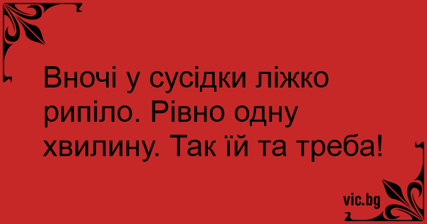 Вночі у сусідки ліжко рипіло. Рівно одну хвилину. Так їй та треба!