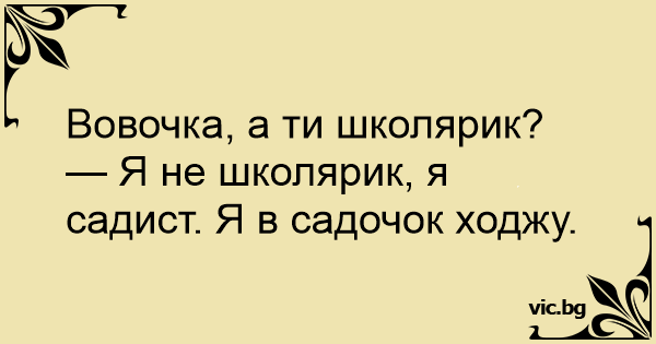 — Я не школярик, я садист. Я в садочок ходжу.