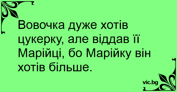 Вовочка дуже хотів цукерку, але віддав її Марійці, бо Марійку він хотів більше.