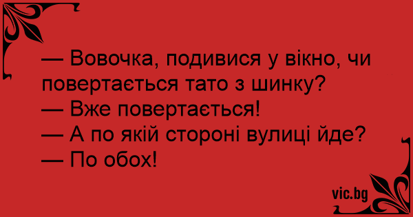 — Вовочка, подивися у вікно, чи повертається тато з шинку?