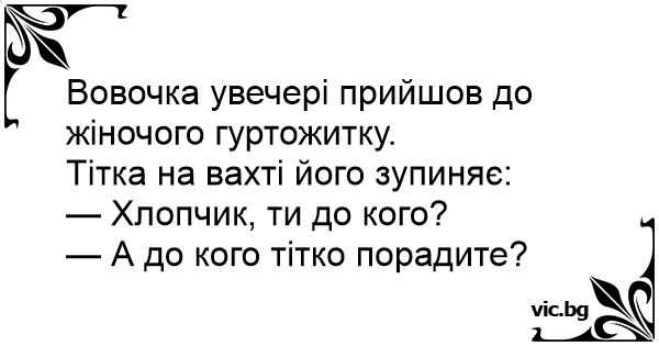 Вовочка увечері прийшов до жіночого гуртожитку.