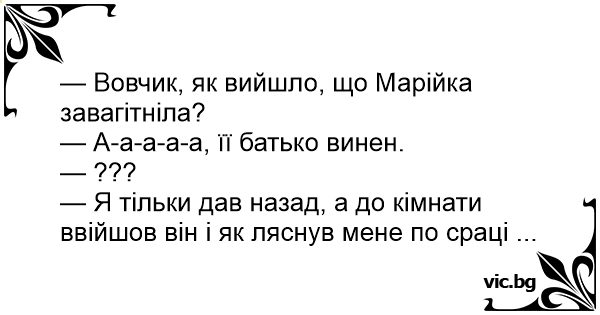 — Вовчик, як вийшло, що Марійка завагітніла?