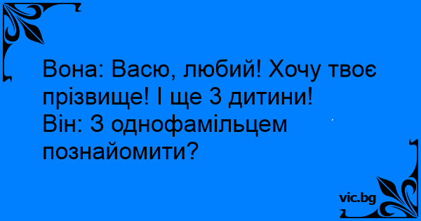 Вона: Васю, любий! Хочу твоє прізвище! І ще 3 дитини!