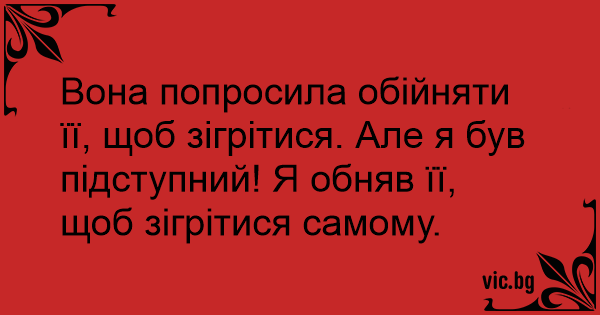 Вона попросила обійняти її, щоб зігрітися. Але я був підступний! Я обняв її, щоб зігрітися самому.