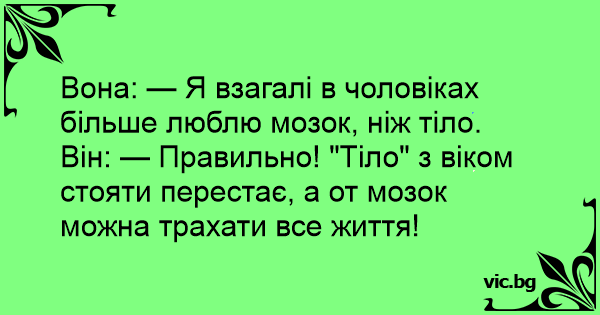 Він: — Правильно! "Тіло" з віком стояти перестає, а от мозок можна трахати все життя!