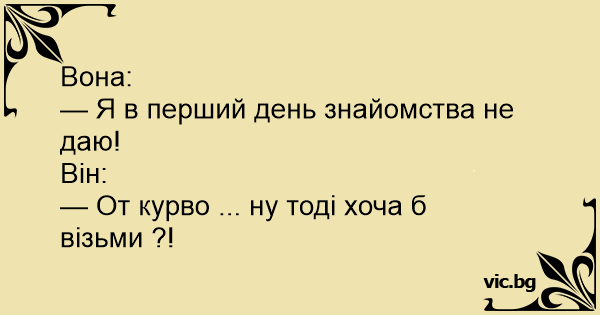 Вона: — Я в перший день...