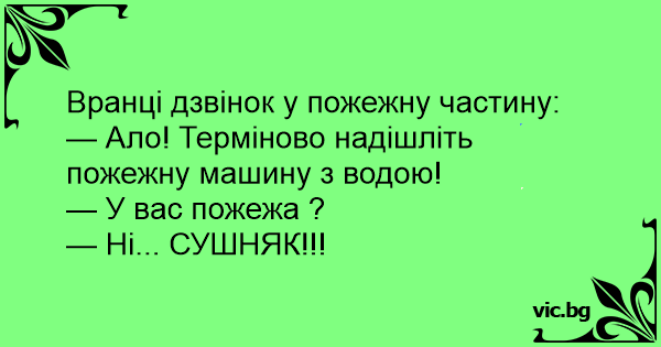 — Ало! Терміново надішліть пожежну машину з водою!