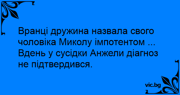 Вранці дружина назвала свого чоловіка Миколу імпотентом ... Вдень у сусідки Анжели діагноз не підтвердився.