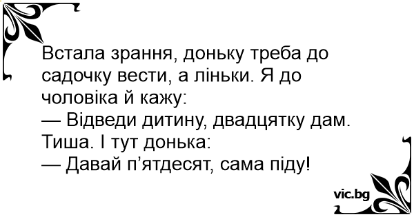 Встала зрання, доньку треба до садочку вести, а ліньки. Я до чоловіка й кажу: