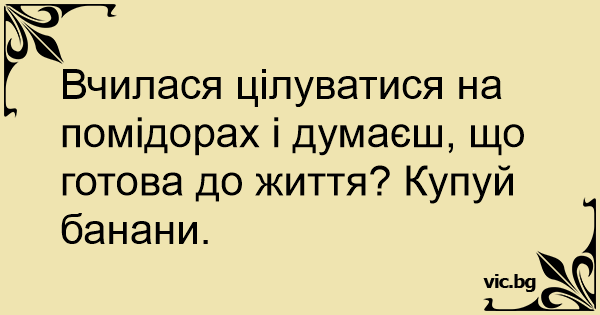 Вчилася цілуватися на помідорах і думаєш, що готова до життя? Купуй банани.