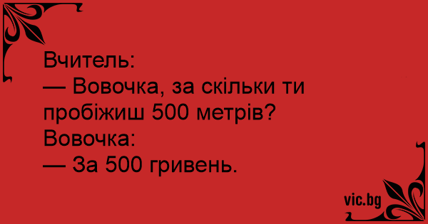 — Вовочка, за скільки ти пробіжиш 500 метрів?