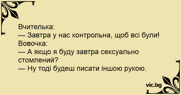 — Завтра у нас контрольна, щоб всі були!
