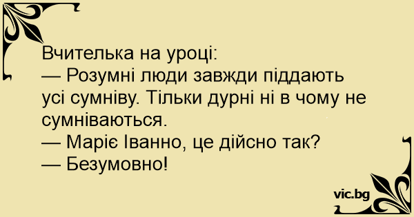 — Розумні люди завжди піддають усі сумніву. Тільки дурні ні в чому не сумніваються.