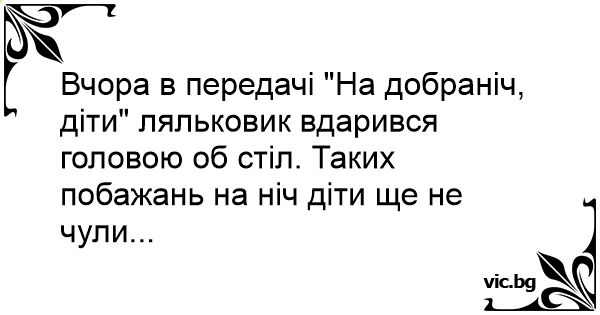 Вчора в передачі "На добраніч, діти" ляльковик вдарився головою об стіл. Таких побажань на ніч діти ще не чули...