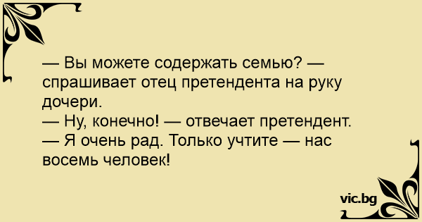 — Вы можете содержать семью? — спрашивает отец претендента на руку дочери.