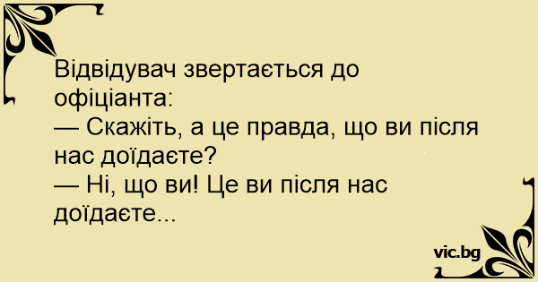 — Скажіть, а це правда, що ви після нас доїдаєте?