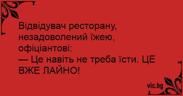— Це навіть не треба їсти. ЦЕ ВЖЕ ЛAЙHO!