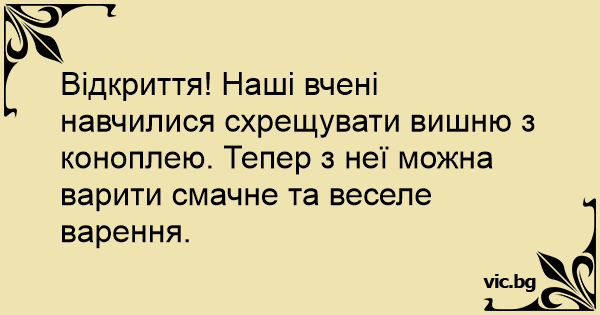 Відкриття! Наші вчені навчилися схрещувати вишню з коноплею. Тепер з неї можна варити смачне та веселе варення.