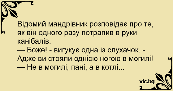 — Боже! - вигукує одна із слухачок. - Адже ви стояли однією ногою в могилі!