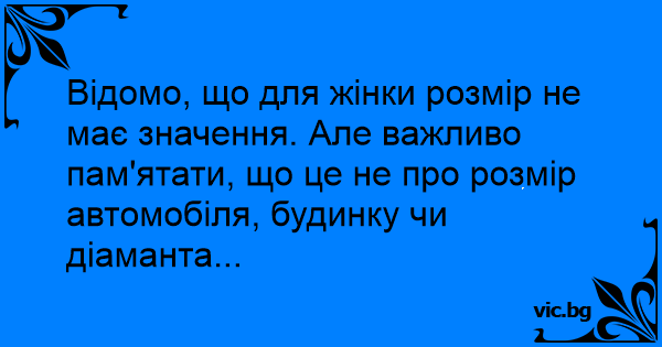 Відомо, що для жінки розмір не має значення. Але важливо пам'ятати, що це не про розмір автомобіля, будинку чи діаманта...
