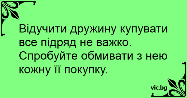 Відучити дружину купувати все підряд не важко. Спробуйте обмивати з нею кожну її покупку.